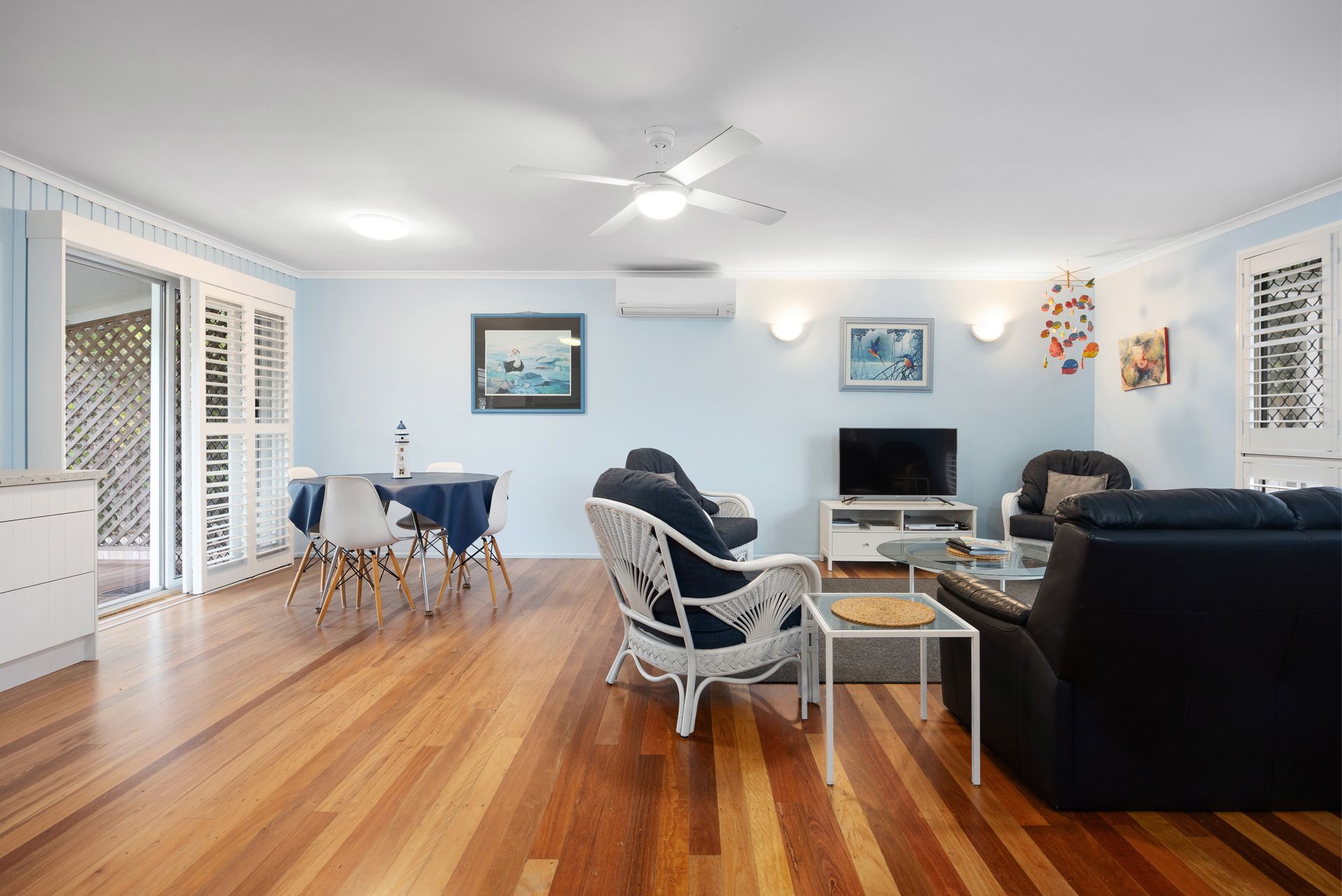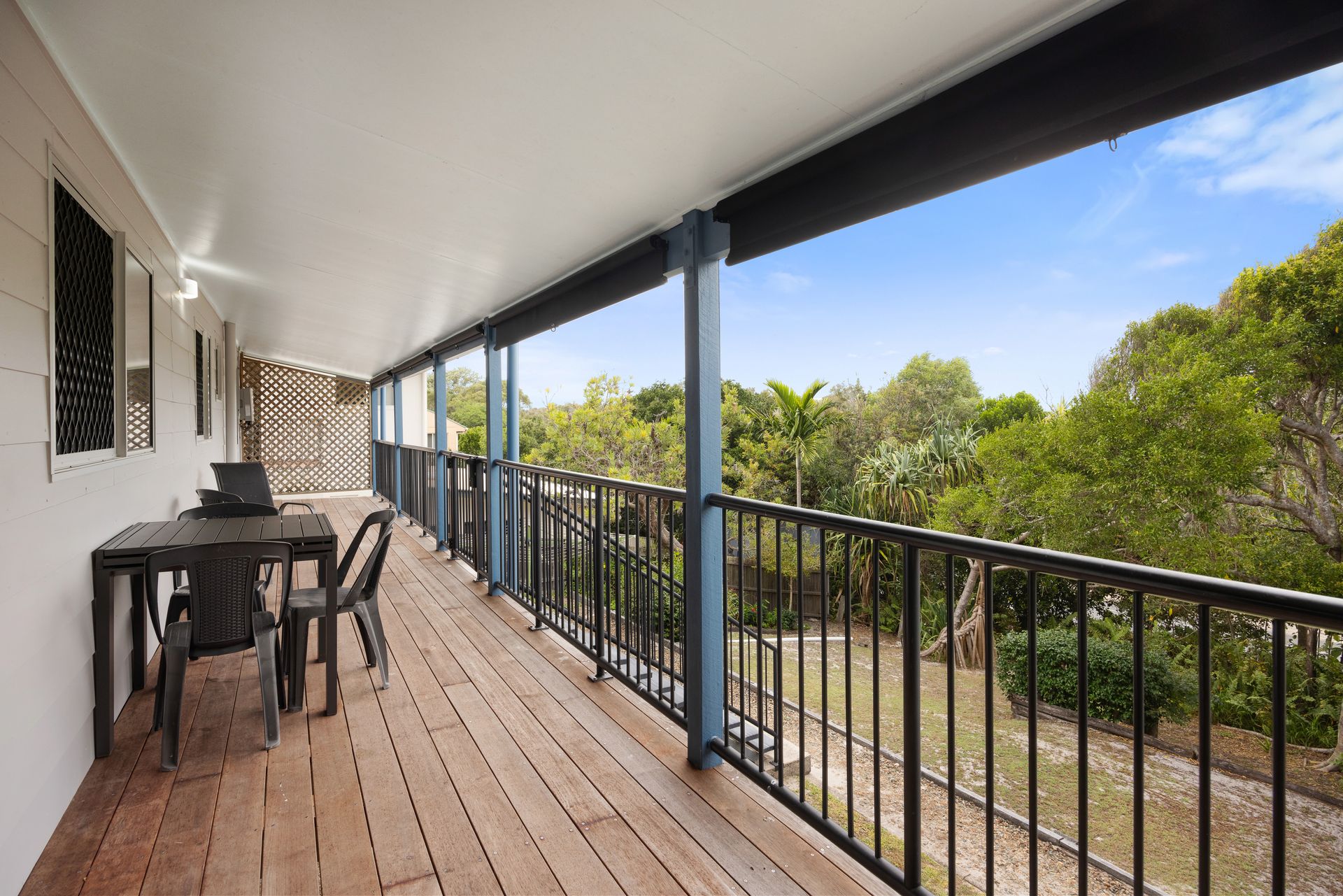 As you step inside, you'll be greeted by a spacious, open-plan living area adorned with polished timber floors and colorful soft furnishings, creating a welcoming holiday atmosphere. The full-length verandah overlooks the backyard, providing a tranquil spot to unwind and soak up the sunshine.