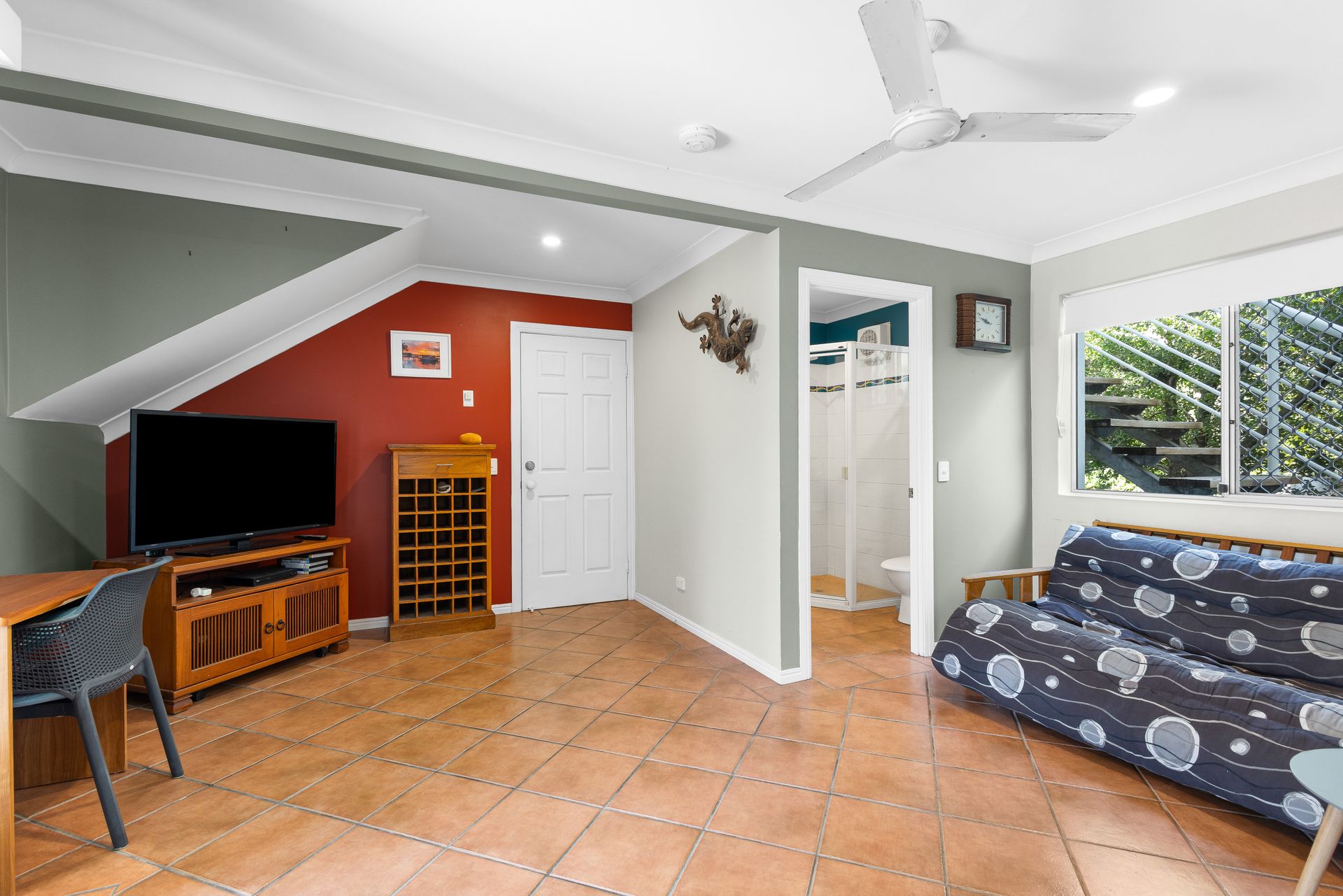 Downstairs, there are two additional single bedrooms with an adjoining rumpus/TV room with a sofa bed, perfect for accommodating extra guests or providing an extra space for entertainment.