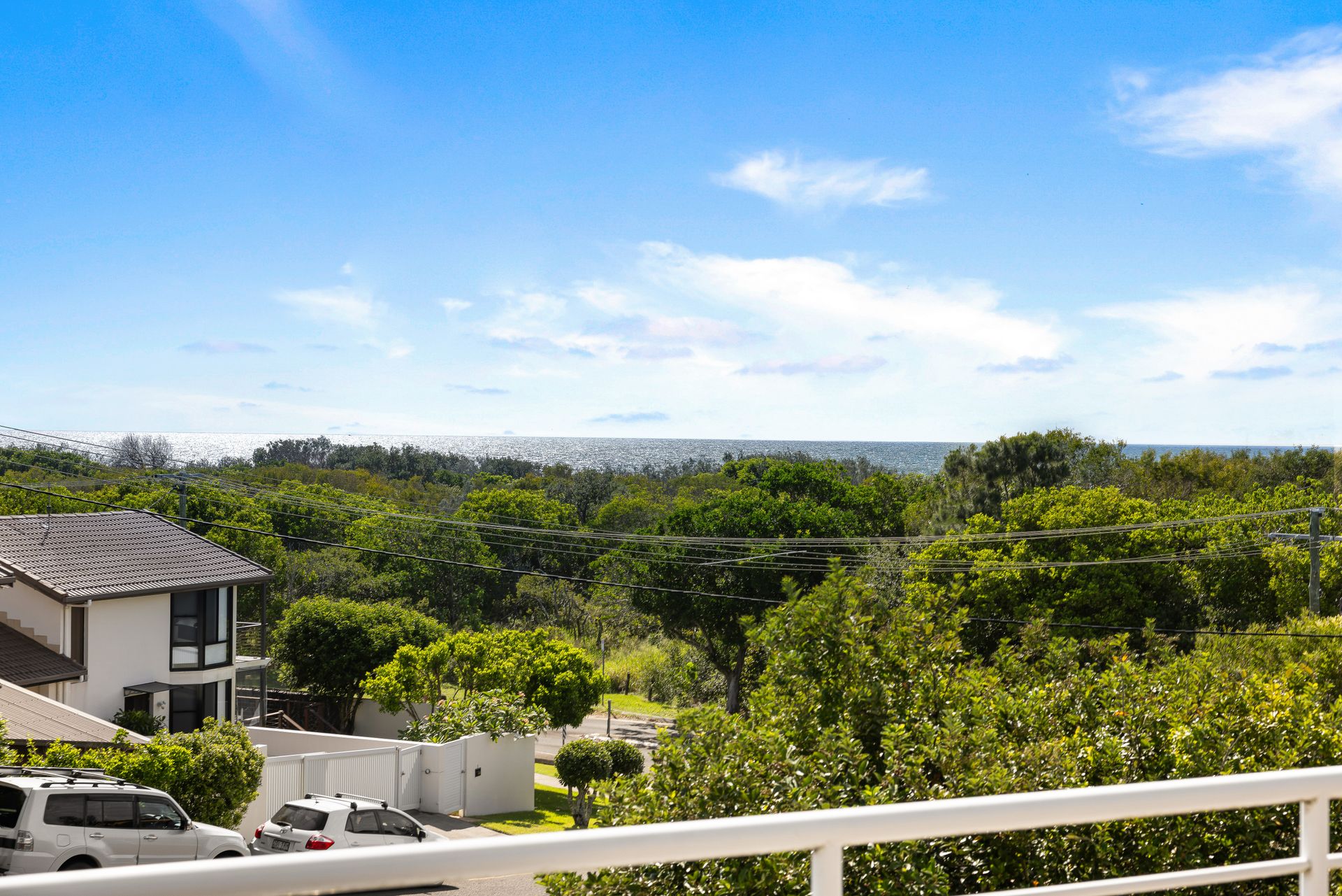 The open-plan living areas and kitchen have sliding door access to a large wrap-around balcony overlooking the pool and offering views to the ocean.