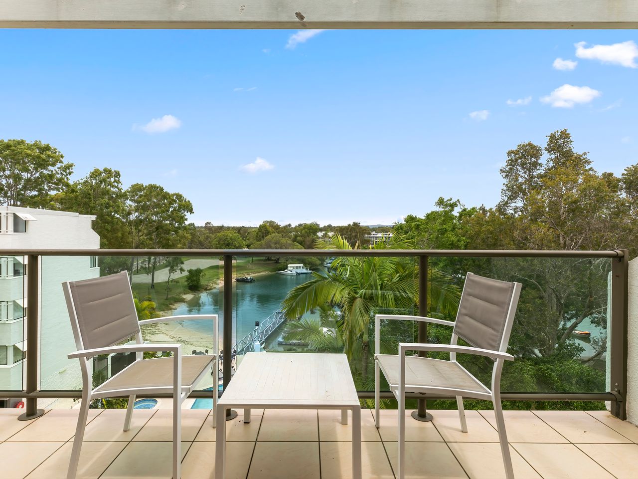 The living area is stylishly furnished, with a SmartTV and Bluetooth speaker for entertainment. A well-equipped kitchen provides all the practical amenities needed for your stay, and a dining table seats six comfortably. The spacious balcony, overlooking the pool and lush gardens with views to Noosa Hill, is the perfect spot to enjoy alfresco dining or simply soak up the morning sun as you ease into another day in paradise.